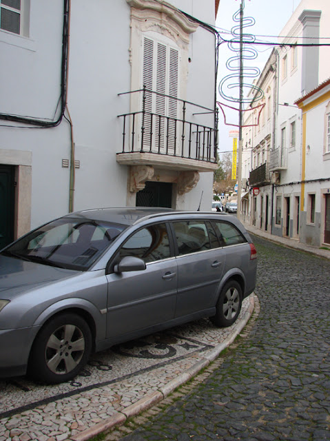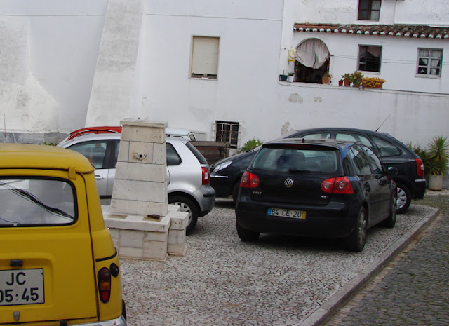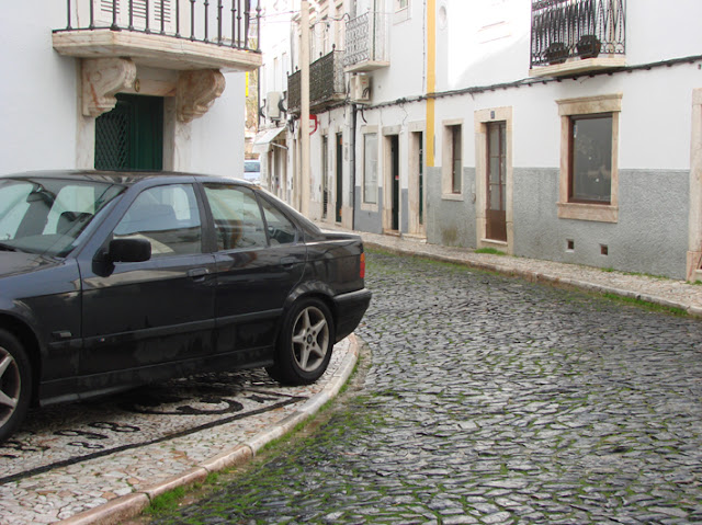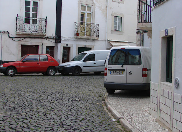 Continuamos a pregar que é um crime contra a cidade (e um verdadeiro tiro no pé) a autorização, pelas próprias autarquias, de lugares de estacionamento automóvel em cima dos passeios. De resto, a mensagem que com esse acto anti-urbano se transmite é a de que afinal de contas é inofensivo estacionar em cima dos passeios. E é, assim, com mais à vontade que os automobilistas estacionam também nos passeios onde essa autorização não existe, como sucede, por exemplo, junto ao Tribunal de Estremoz, ao lado do local - acima mostrado - onde foram criados lugares em cima do passeio: