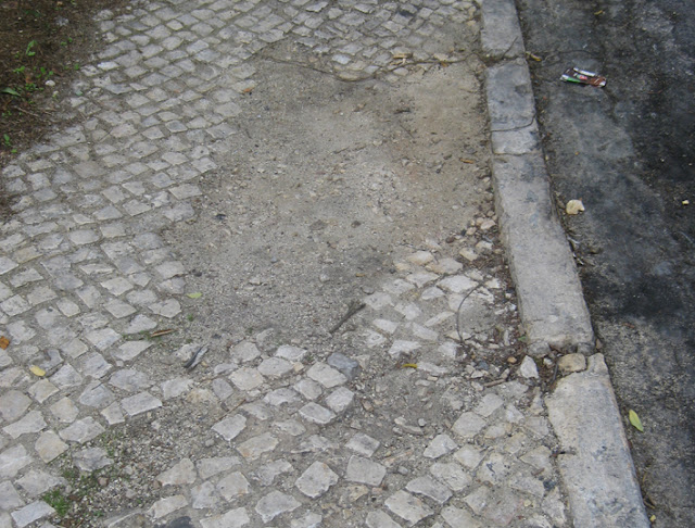 [A que acrescem buracos e “armadilhas” que são um convite à queda de peões:]