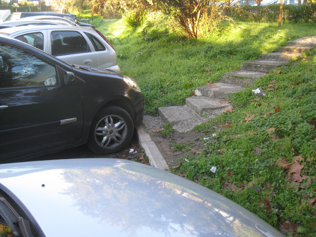 estacionamento selvagem invade os espaços verdes e mesmo os passeios. Aquilo